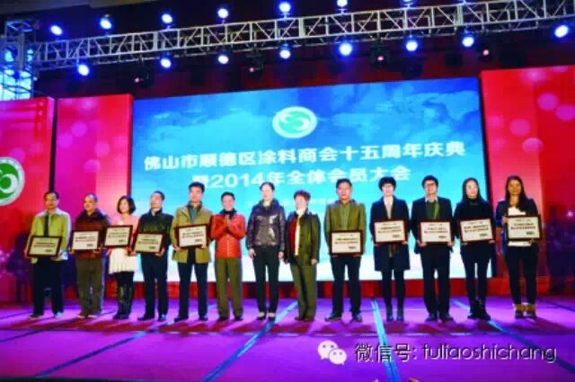 嘉宝莉化工集团股份有限公司许有为、广东华润涂料有限公司方昕、广东鸿昌化工有限公司郭锡有、广东美涂士建材股份有限公司任德忠、广东千色花化工有限公司李江宁等15人获得“顺德—中国涂料之乡”企业经营管理优秀奖。广东自然涂化工有限公司、佛山市伊思曼化工有限公司、佛山市顺德区鸿昌涂料实业有限公司等20家企业获“顺德—中国涂料之乡”最具创新能力奖。嘉宝莉化工集团股份有限公司、广东美涂士建材股份有限公司、广东巴德士化工有限公司、广东千色花化工有限公司等18家企业获颁“顺德—中国涂料之乡”热心社会公益事业奖。嘉宝莉化工集团股份有限公司黄志敏、广东美涂士建材股份有限公司黄文辉、鹤山市君子兰涂料有限公司王达贤等23人获得“顺德—中国涂料之乡”密切联系行业商会先进奖。大会还对梁俊谦、周伟建、方学平、曹树潮、陈豪伟、叶汉慈、施青林、马慧峰等15人颁发了行业突出贡献奖。